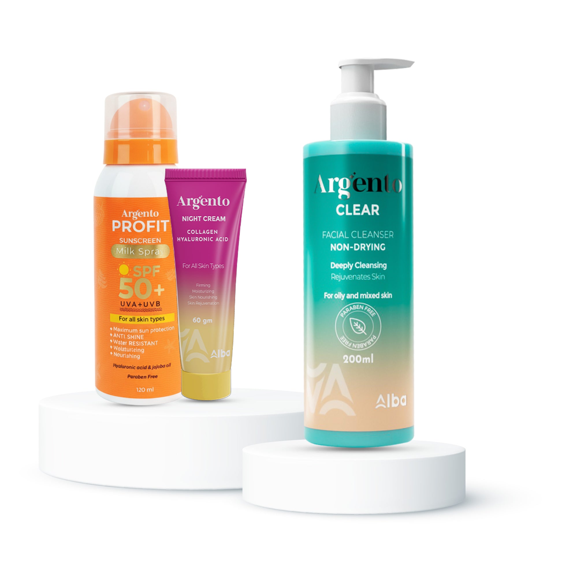 عرض غسول أرجينتو للبشرة+ أزهى سي سيرم + واقي الشمس