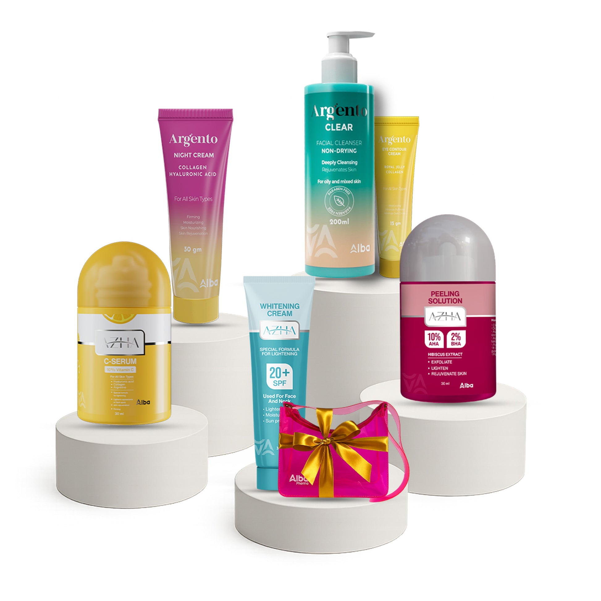 مع حقيبة Azha Pink المكونة من 5 منتجات أساسية، ستتغير بشرتك في الأسابيع الثلاثة الأولى فقط، مع توفير يصل إلى 40%!