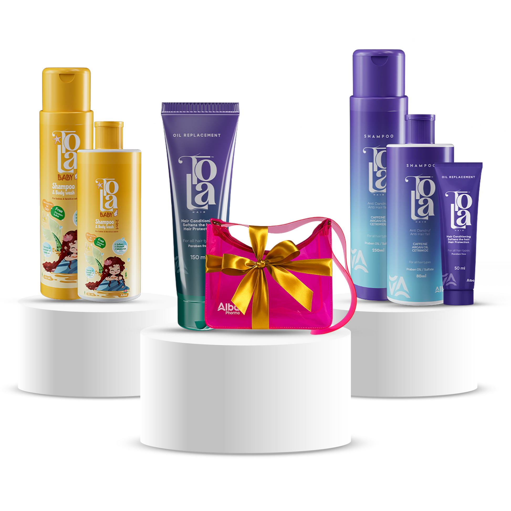 - تتضمن هذه المجموعة الشاملة ثلاثة من منتجات تولا الأكثر مبيعًا لتنظيف شعر طفلكِ وبشرته بلطف وحمايته وتغذيته. بالإضافة إلى ذلك، احصلي على حقيبة تايلاندية مجانية لسهولة التخزين والسفر.